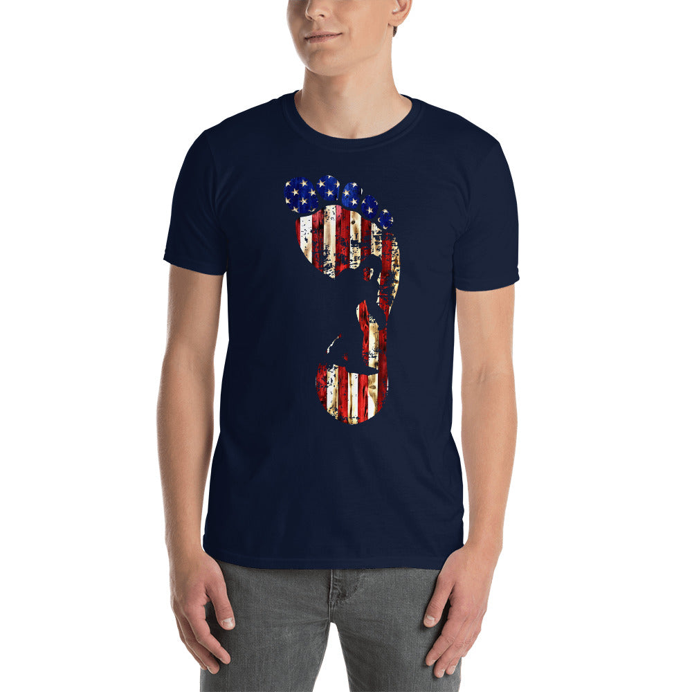We can't prove it, but we are pretty sure bigfoot was born in America. This t-shirt is all the proof you need though, so order yours today! This is a one of a kind product you will not find anywhere else online.